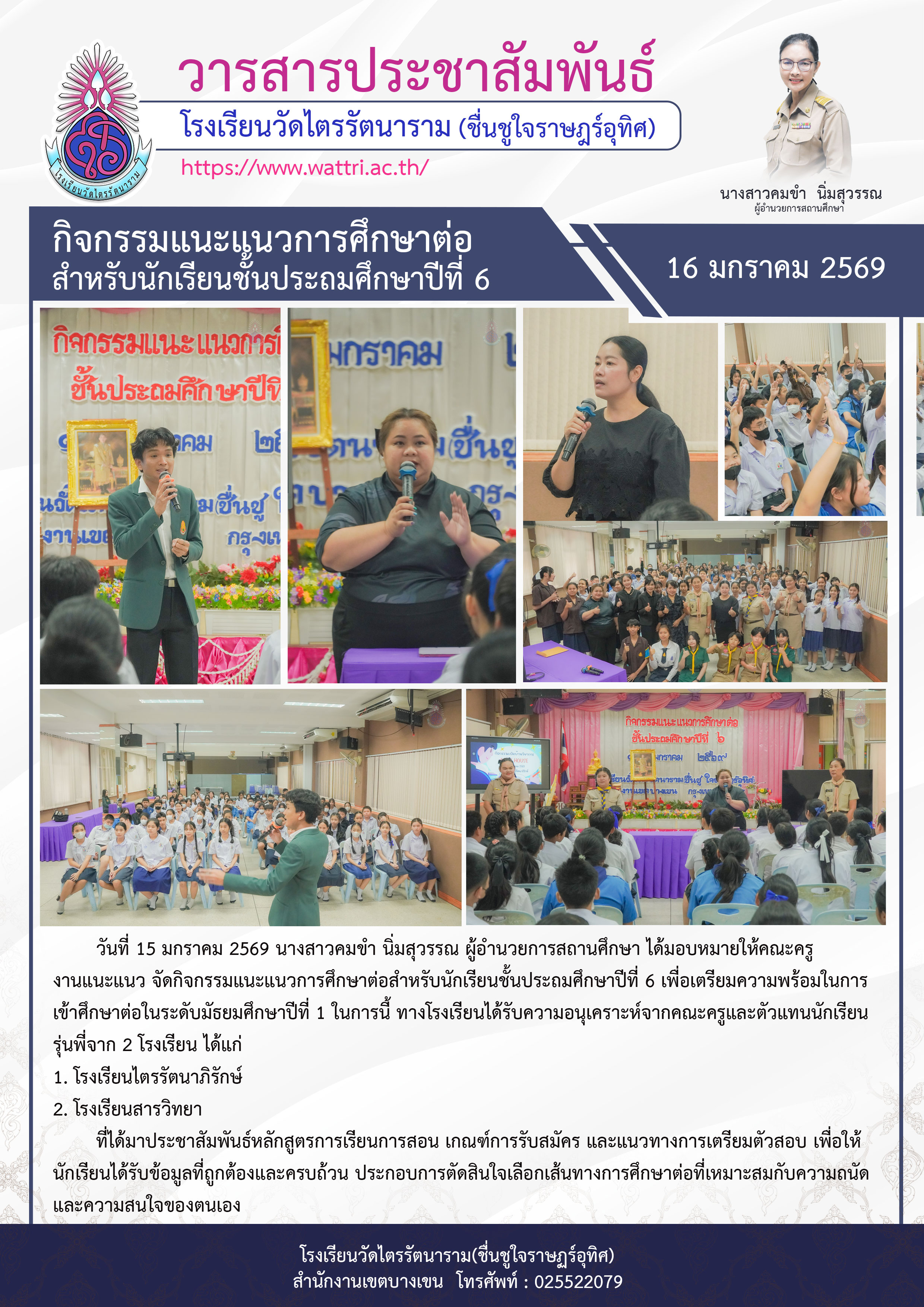 [2026-01-21] คำสั่งที่ 127 เรื่อง แต่งตั้งคณะกรรมการดำเนินกิจกรรมแนะแนวการศึกษาต่อนักเรียนชั้นประถมศึกษาปีที่ 6 ปีการศึกษา 2568 View : 22