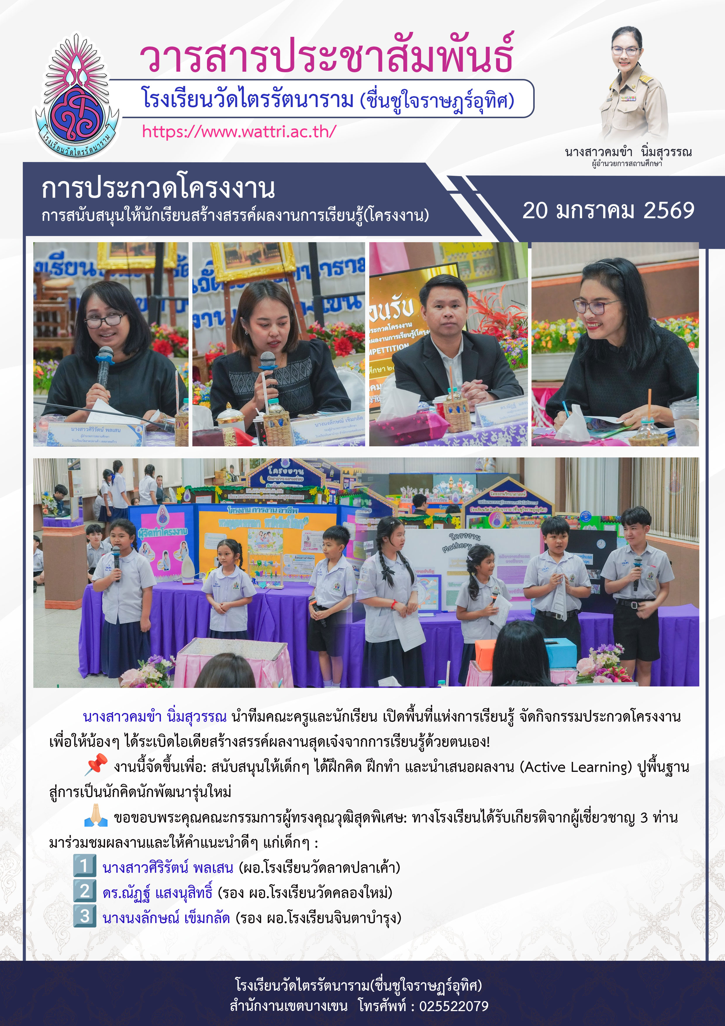 [2026-01-21] คำสั่งที่ 128 เรื่อง โครงการส่งเสริมสนับสนุนให้นักเรียนสร้างสรรค์ผลงานเพื่อการเรียนรู้(โครงงาน) ระดับประถมศึกษาปีที่ 1-6 View : 28