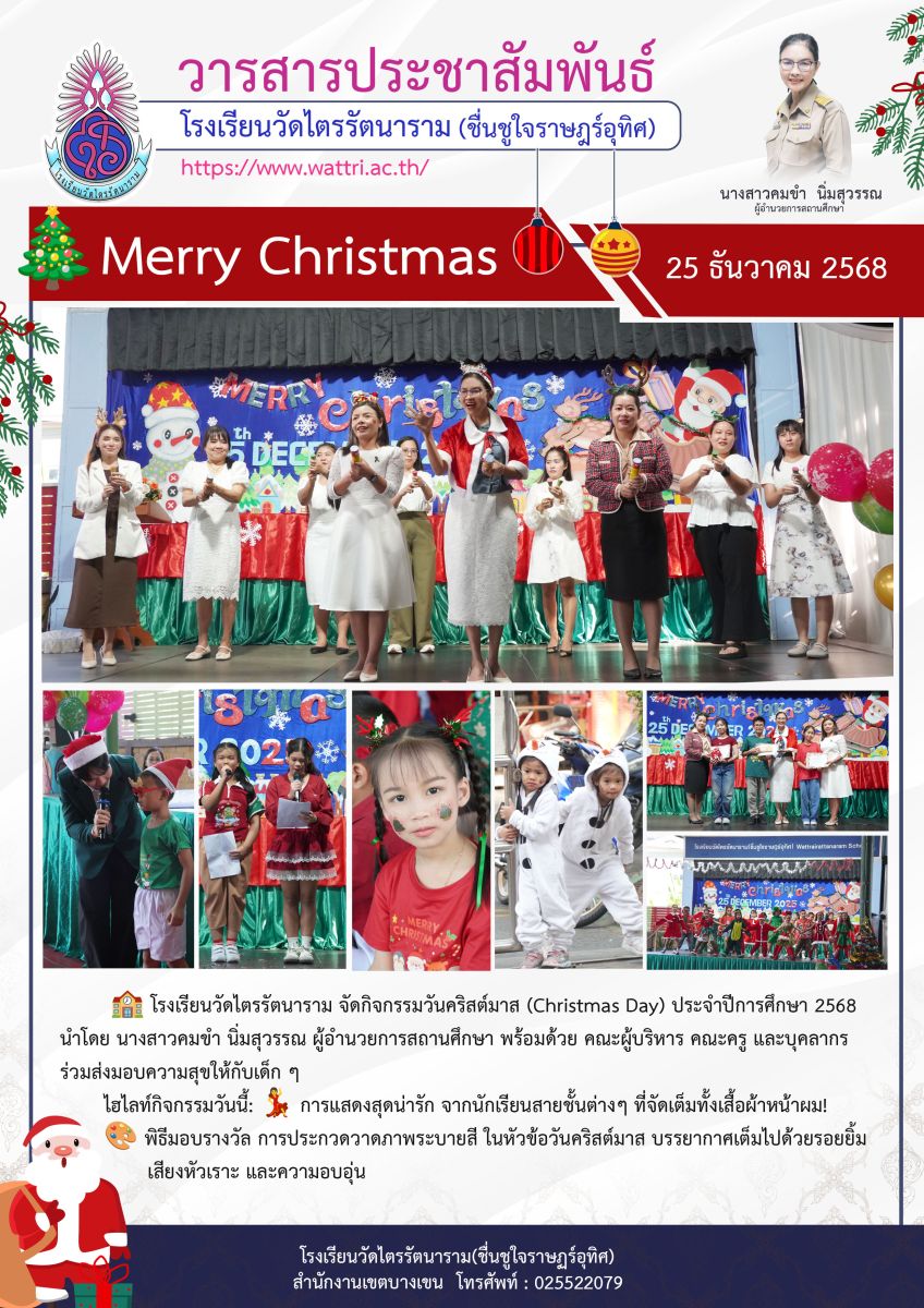 โรงเรียนวัดไตรรัตนาราม จัดกิจกรรมวันคริสต์มาส (Christmas Day) ประจำปีการศึกษา 2568 นำโดย นางสาวคมขำ นิ่มสุวรรณ ผู้อำนวยการสถานศึกษา พร้อมด้วย คณะผู้บริหาร คณะครู และบุคลากร ร่วมส่งมอบความสุขให้กับเด็ก ๆ