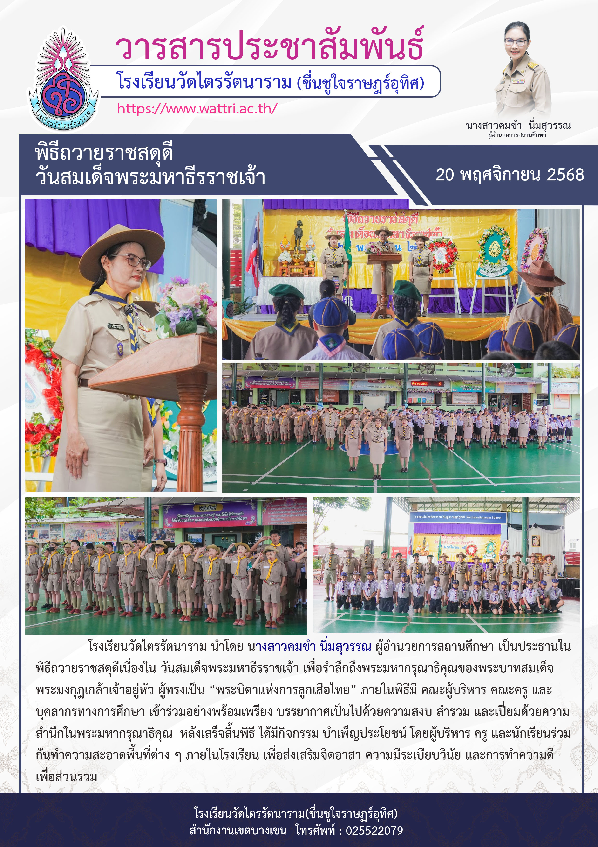 [2025-11-19] คำสั่งที่ 117 เรื่องเป็นต้นคณะกรรมการดำเนินการกิจกรรมพิธีถวายราชสดุดีเนื่องในวันคล้ายวันสวรรคตพระบาทสมเด็จพระมงกุฏเกล้าเจ้าอยู่หัว วันสมเด็จพระมหาธีรราชเจ้า ประจำปีการศึกษา 2568 View : 48
